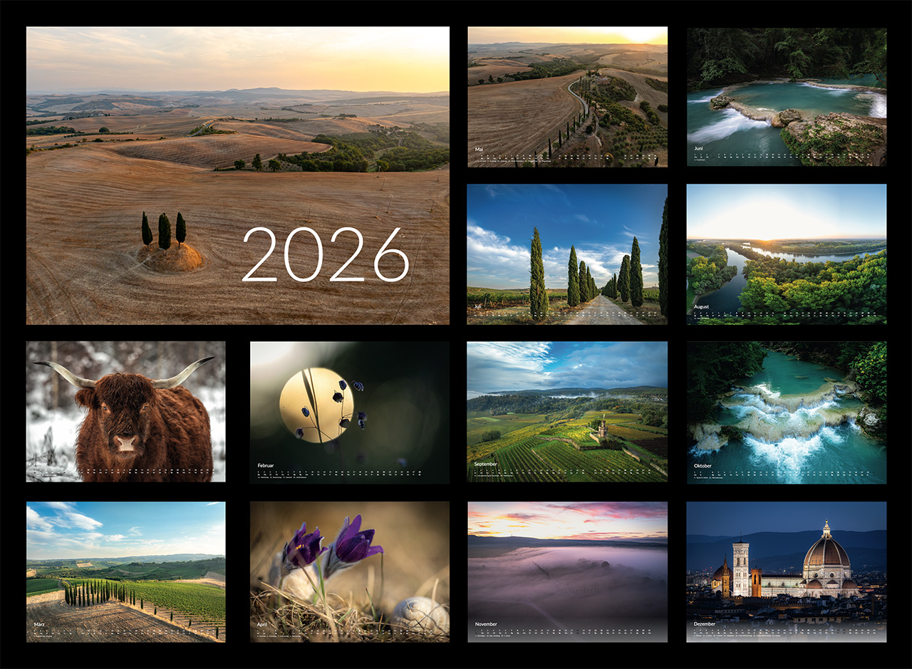 View More Wandkalender 2026Irgendwie kann ich von den Zypressen und sanften Hügel der Toskana nicht genug bekommen. Am wohl schönsten ist die Toskana in der Region des Val…