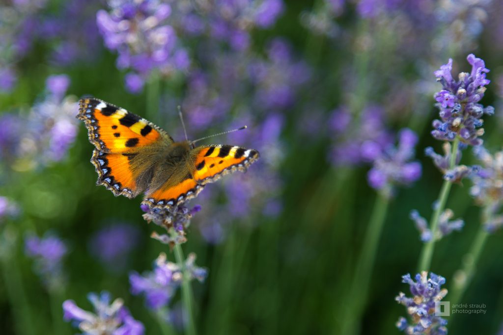 Unser Lavendel im Garten zieht etliche Insekten an, darunter auch der „Kleine Fuchs“, auch Nesselfalter genannt.