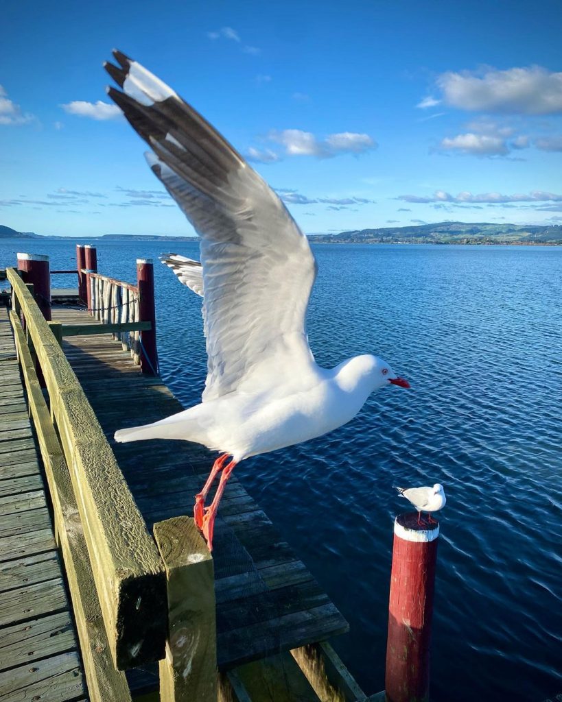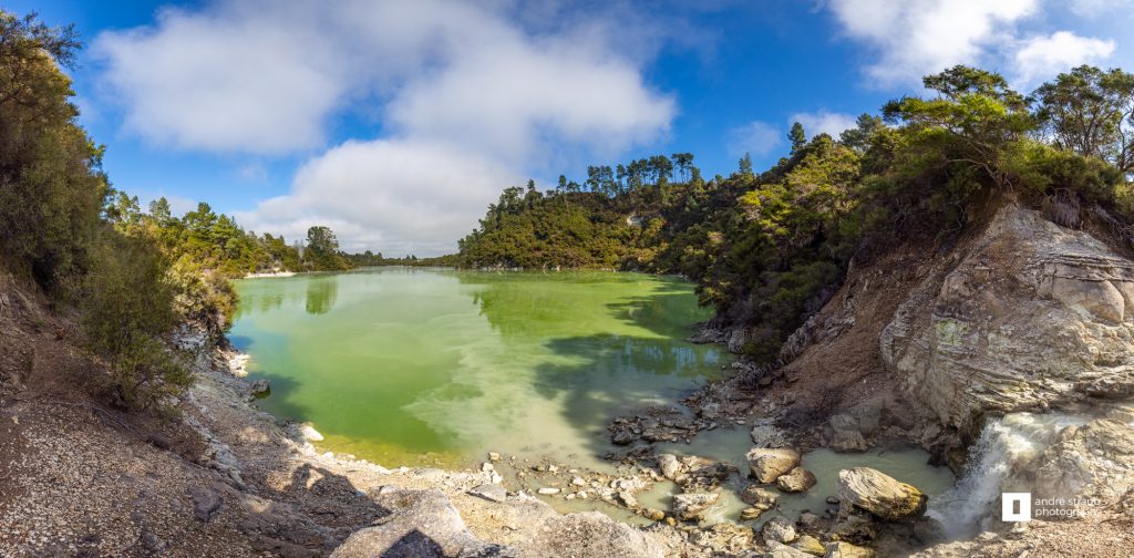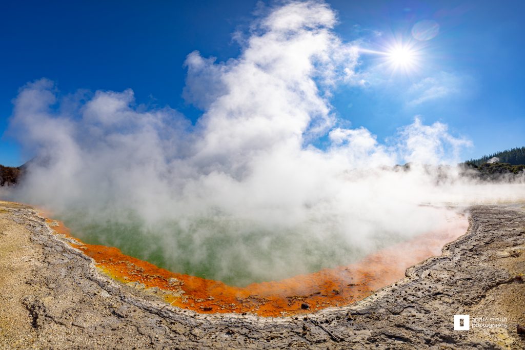 Von da aus ging es dann weiter nach Rotorua, welches für seine heißen Quellen bekannt ist. Rotorua befindet sich direkt am Ufer eines inaktiven Vulkans. Kommt man in die Stadt, begegnet einem gern auch mal der Geruch des Teufels – Schwefel. In und um Rotorua kann man vulkanische Aktivitäten, wie in Hell’s Gate, aber auch riesige Bäume im Redwood Forest aus nächster Nähe sehen.