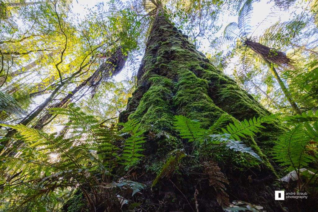Leider war dann diesmal der Wettergott nicht mit uns gnädig, so dass wir keinen Blick auf Mordor hatten. Von unserer Homebase Ohakune sind wir dann zuerst auf den Ruapehu gefahren, damit wir dann oben mitten im Nebel und Schnee standen und bei der Abfahrt in einen dicken Regen kamen. Daher blieb uns nur eine kleine Wanderung durch den „Urwald“ mit beeindruckenden Farnen übrig. Unterhalb des Ruapehu befindet sich der Mangawhero Wasserfall, der auch als „Gollum’s Pool“ bekannt ist. Immerhin wir am Ende der drei Tage einen traumhaften Blick auf den Ruapehu (Ngauruhoe ist der kleinere Vulkan dahinter und hat sich daher wieder versteckelt).
